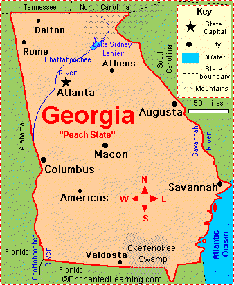 Georgia Map With Major Cities - Georgia: Facts, Map and State Symbols EnchantedLearning.com Georgia US State PowerPoint Map, Highways, Waterways, Capital and